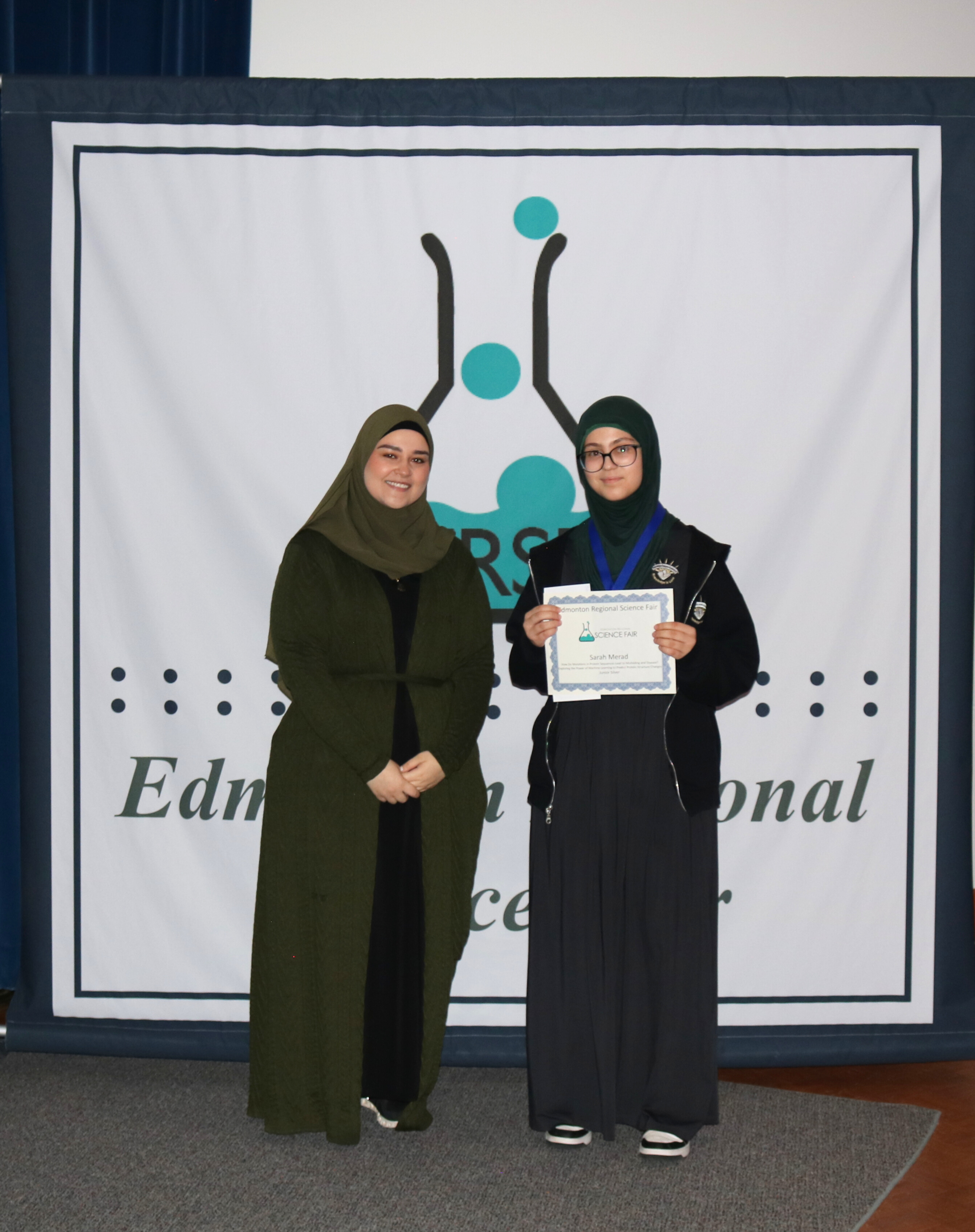 Sarah MeradHow do Mutations in Protein Sequences Lead to Misfolding and Disease? Exploring the Power of Machine Learning to Predict Protein Structure ChangesE.H. Gowan Physics Award of ExcellenceWinnerEdmonton Islamic Academy